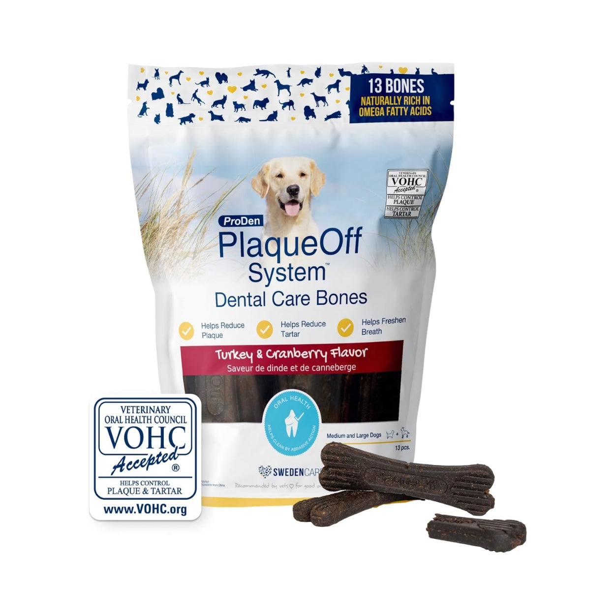 ProDen PlaqueOff 13 Dental Bones for Medium & Large Dogs Tartar, Plaque & Bad Breath Remover, Improves Overall Oral Health Flavour(Turkey & Cranberry)