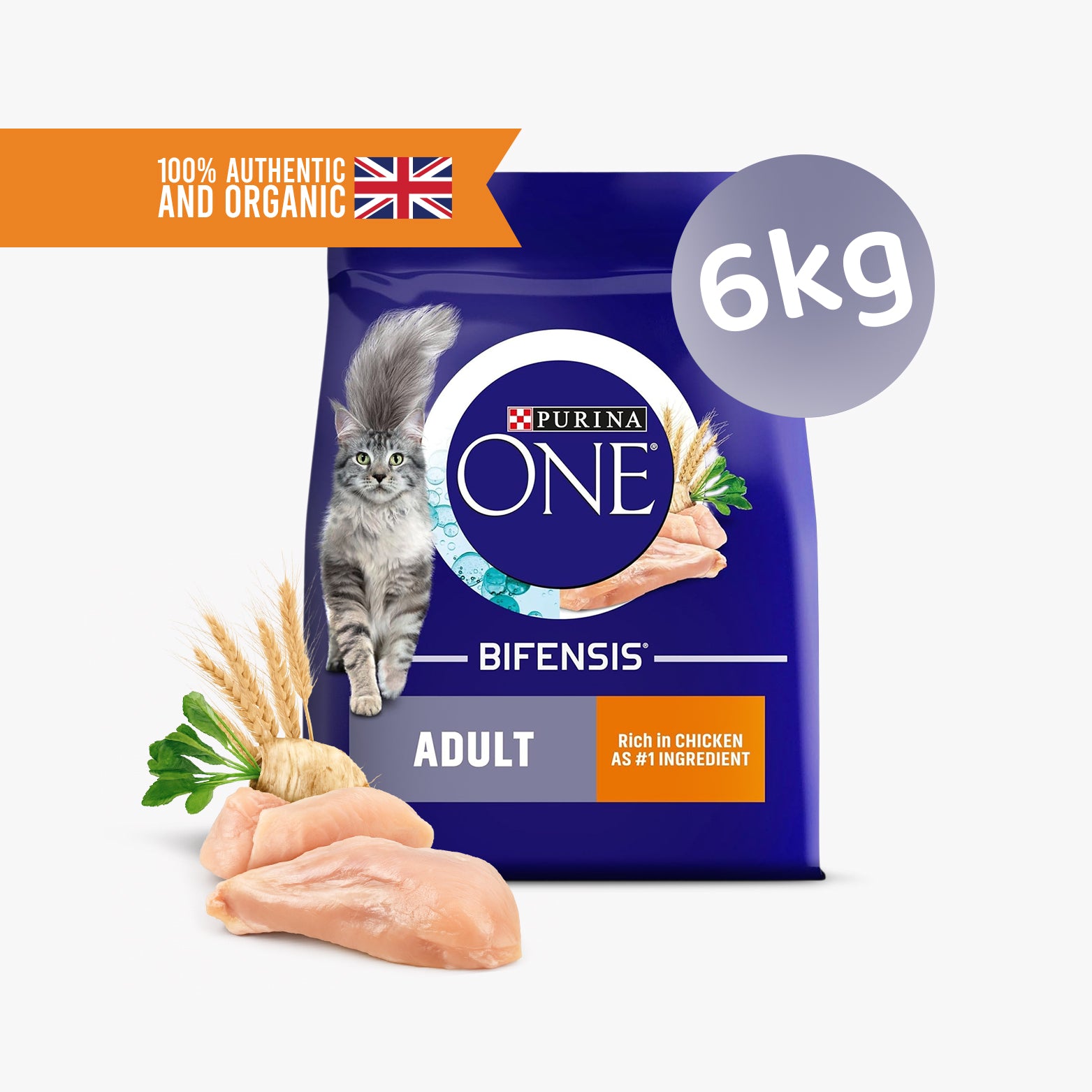PURINA ONE Chicken Dry Cat Food 6 kg is formulated to support a healthy urinary tract in adult cats. Made with high-quality chicken, it provides essential protein for lean muscle maintenance while delivering a taste cats love. The recipe includes balanced minerals to help maintain urinary health and prevent issues like urinary stones. Enriched with vitamins and antioxidants, it also supports overall well-being and a strong immune system. Each pack offers complete and balanced daily nutrition.